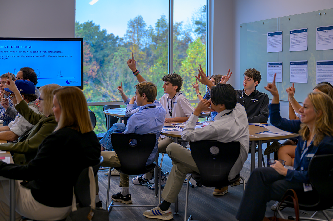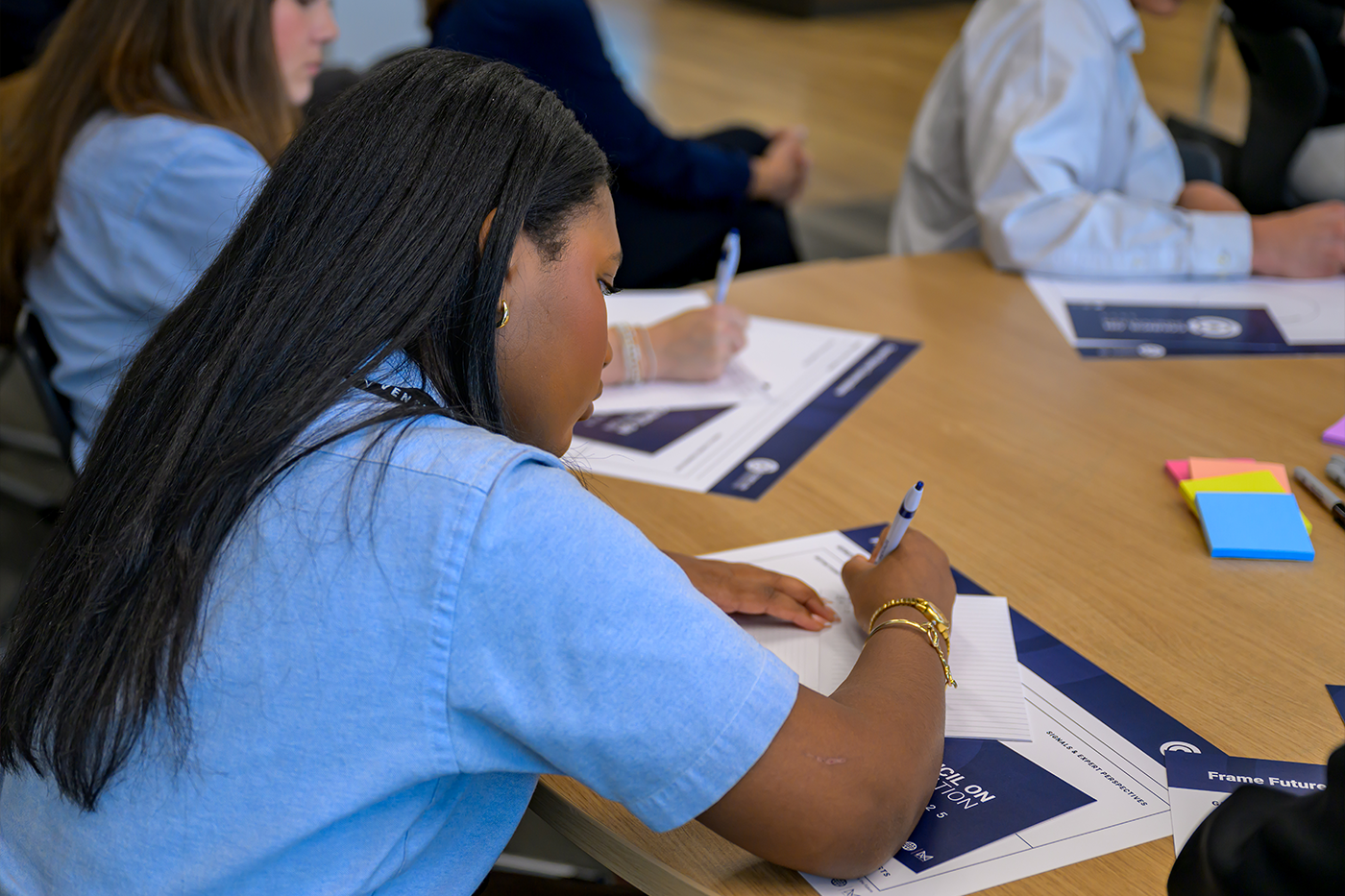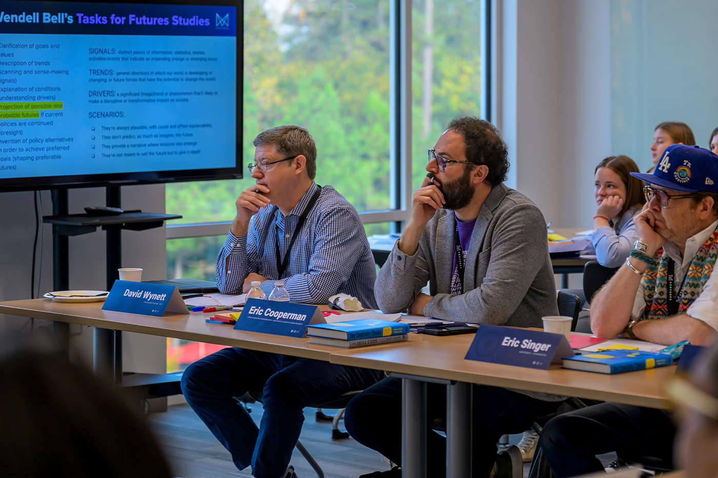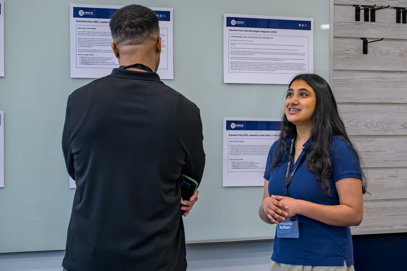 Under Colley’s direction, participants moved from inspiration to action. Teams scanned the landscape for emerging signals, making sense of them by examining major drivers of change across technology, climate resilience, civic engagement, and the future of work. They then translated those signals and drivers into visionary scenarios. Together, they explored the questions: What skills will be most essential for entry-level workers to be successful? And what kind of workplace environment will foster growth and success?
