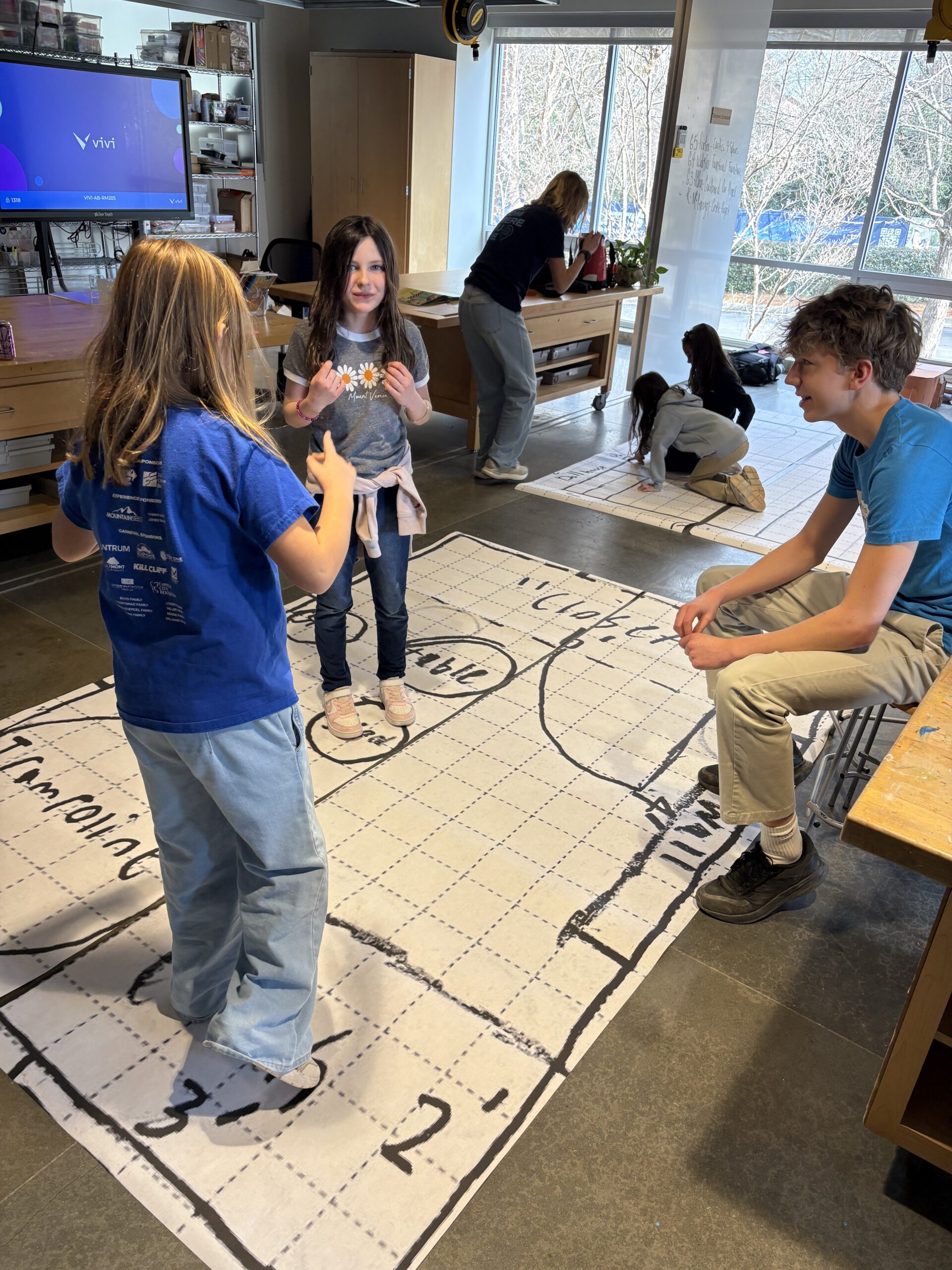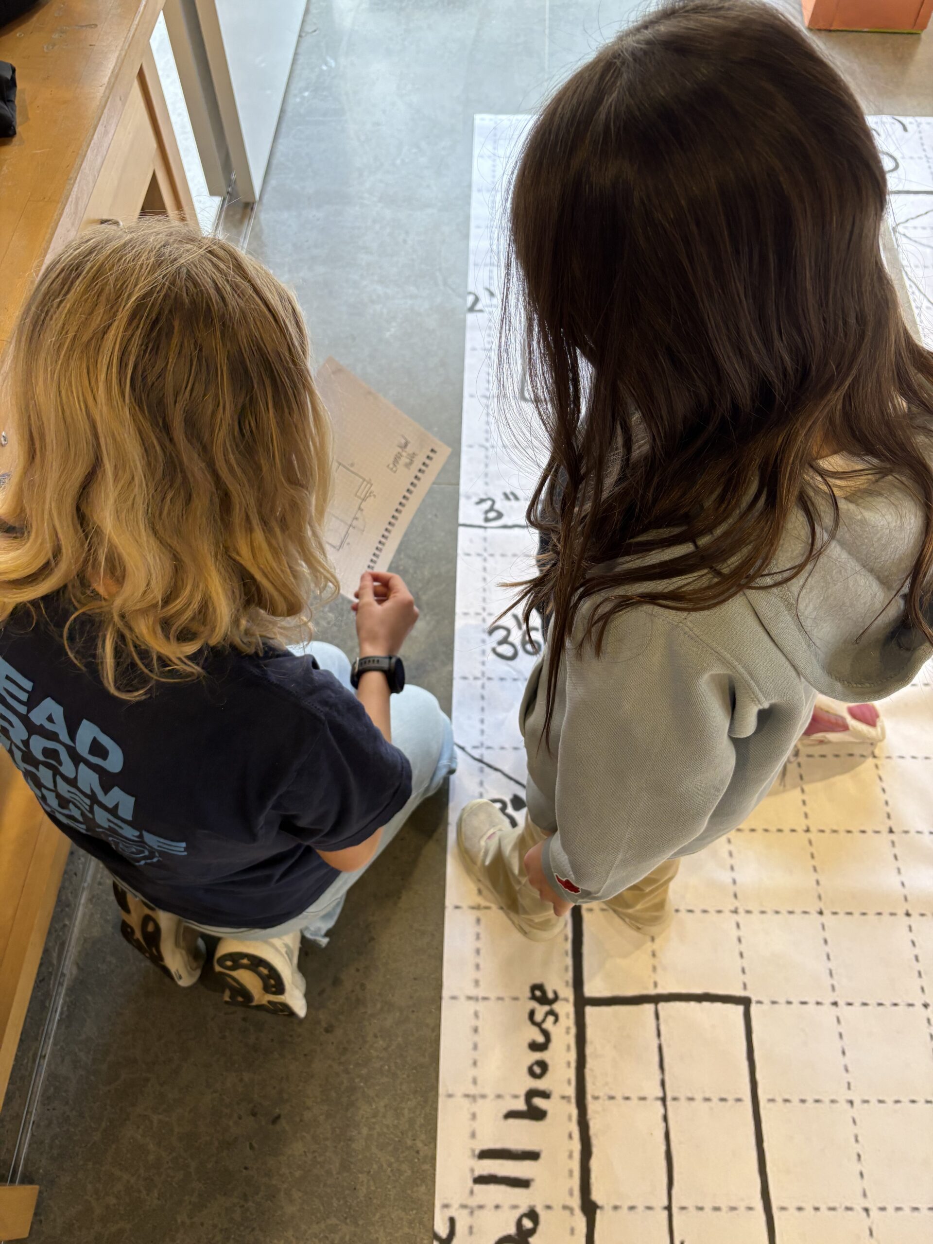 To prepare, ninth graders developed open-ended interview questions and practiced how to engage younger learners meaningfully. The resulting interactions were striking: life-sized floor plans, immediate feedback, and visible excitement on both sides.