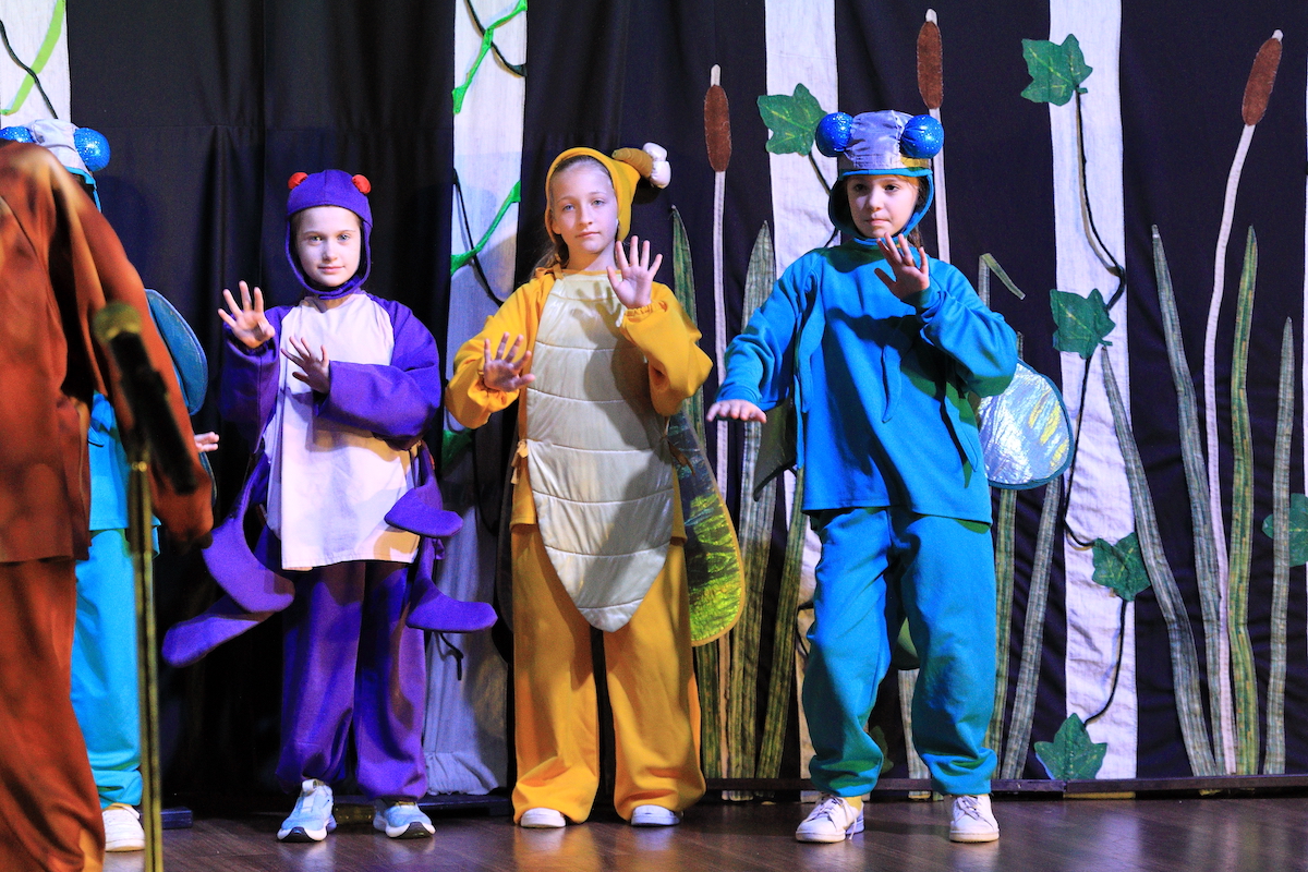 The Mount Vernon School has again partnered with the Missoula Children’s Theater, a nationally touring theater group dedicated to developing life skills in children through participation in the performing arts. This year, 63 students in Grades 1 – 5 brought the beloved tale, The Frog Prince, to life. What makes this performance so special? The entire production: auditions, rehearsal, set construction, and costume fittings unfolded within one school week culminating in two performances on Friday, December 3, and Saturday, December 4.